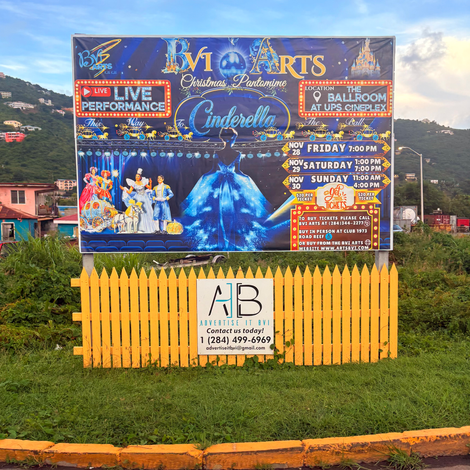 The brief challenged artists to design a poster that captured the magic and fun of Cinderella, while incorporating several required elements including the BVI Arts logo, a disco ball and key pantomime details. The winning design would be featured on two large billboards in Road Town, giving the chosen artist the opportunity to showcase their work at a truly public scale.